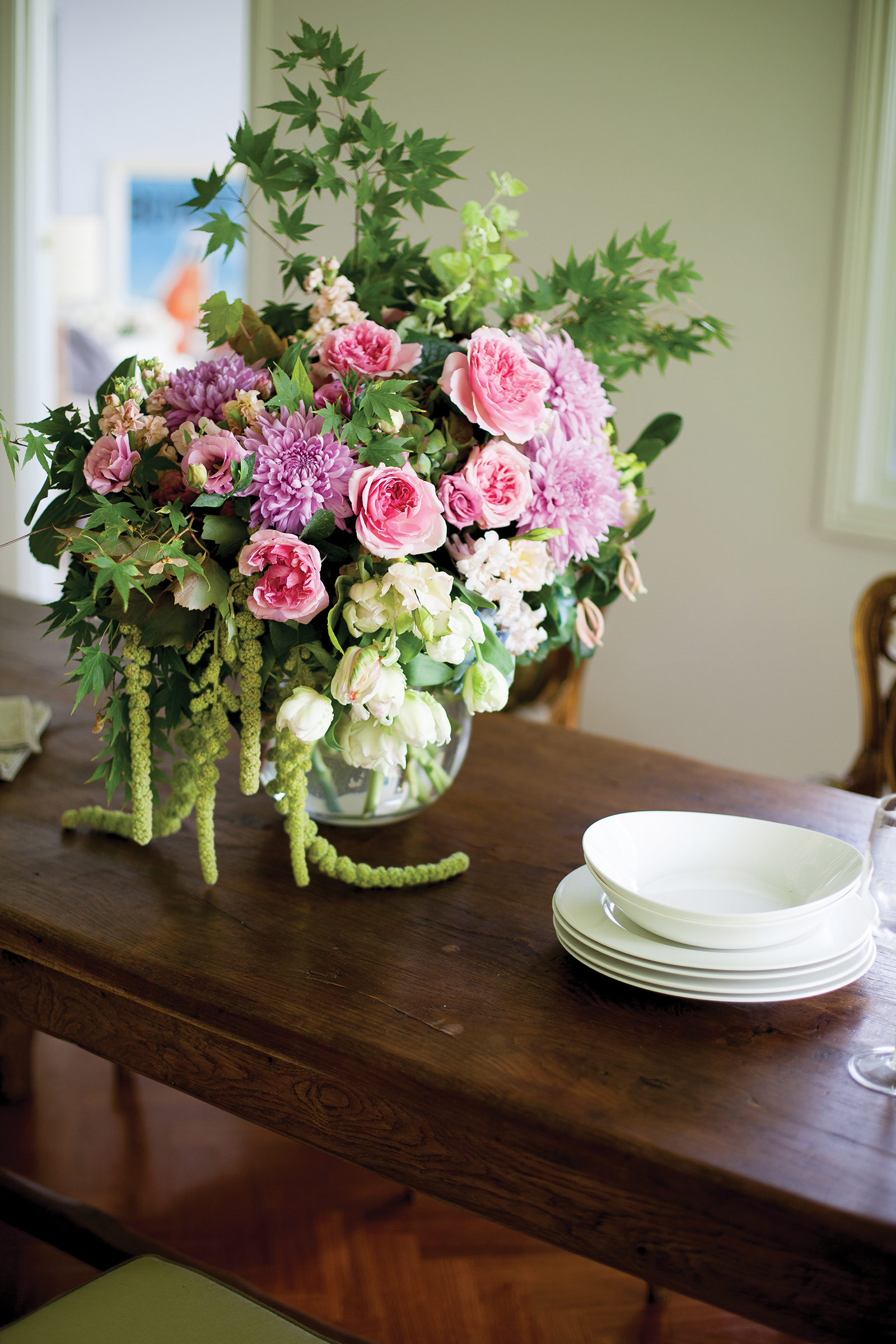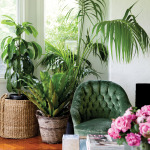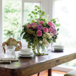 Much of the interior of the 1970s home has been refurbished in Cherrie’s trademark style which she describes as a type of gypsy decorating. “I pick up pieces on my travels, buying for the store,” said Cherrie. Plush velvet button back armchairs are woven together with simple Nordic pieces and the combination works beautifully together, much like one of her opulent bouquets.