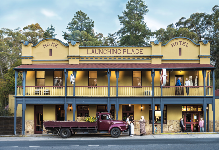 There is a timeless quality to the view from the front windows of the Home Hotel in Launching Place. The hue of blue-tinged mountains in the distance melts softly, mixing with the ‘always green’ tablelands of the river flats of the Upper Yarra Valley. The Birrarung in the foreground is an ever-present reminder of the seasons, and the road that passes in front of the Home Hotel has brought travellers and locals to the door for more than 140 years. Today people also arrive via the rail trail at the hotel’s back door. Cyclists and walkers, families, fur kids and friends, horse riders, motorbike riders and car clubs can find sustenance at one of the valley’s most regarded and longstanding hospitality destinations. People even float in on the river.